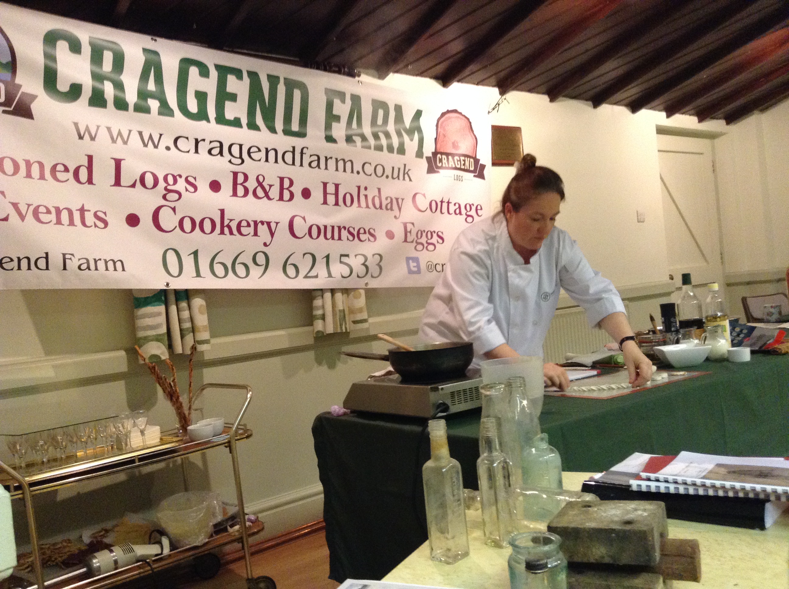 Mary Wilkins and Lou Renwick took cooking equipment and ingredients along to Cambo Village Hall, Northumberland to entertain the local W.I. Group in October 2016. Lou gave a talk on the history of Cragend Farm and the renovations that are on going. The talk included viewing examples of items found on the farm during the renovations, including a cannon ball, a hedge splitter and old milk bottles. Meanwhile Mary cooked Leek Soup as a canape with crispy parma ham, palmiers and sushi, explaining how a little prepartion before a party, especially at Christmas time can make the finishing touches to the canapes so much easier on the night. A delicious array of canapes were on show as a prelude to the Cookery Lunch Demonstrations at Cragend on offer for Birthdays, Anniversaries or just a treat lunch by contacting www.marywilkinscookery.co.uk to book. Cragend Farm is available for use as a venue and visitor days to explore the farm can be arrange by appointment with Lou Renwick.