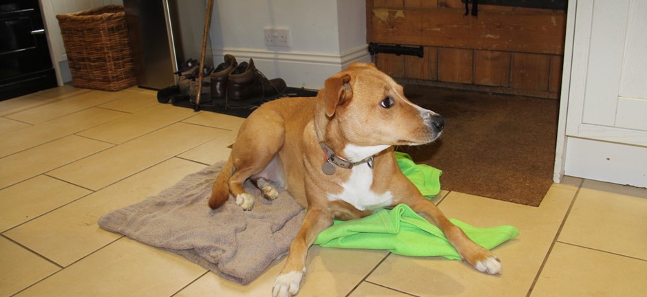 This is Pebbles who came to visit us and stayed at East Cottage Holiday Accommodation at Cragend Farm. Her lineage was under debate and so as a birthday gift her DNA was tested to prove that she is a ... cross between a Boxer and an American Rat Terrier.