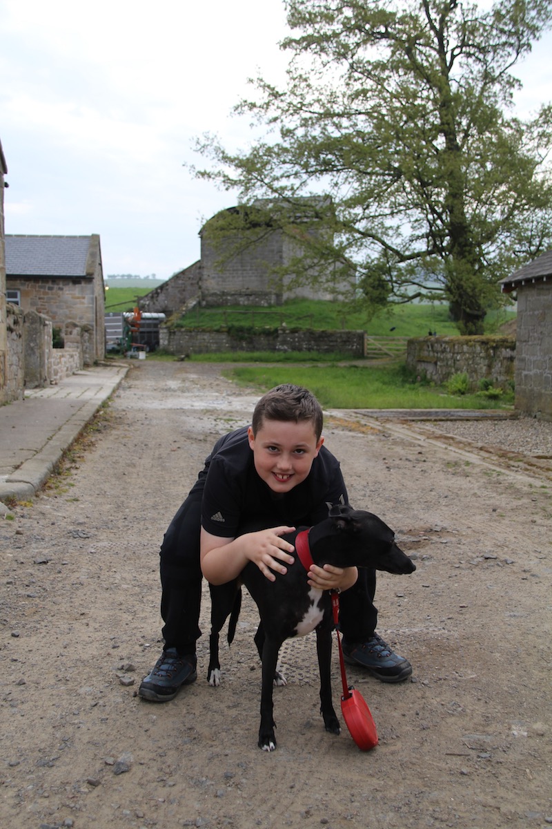 This lovely whippet is called Nell and she came to stay with her family during half-term. She had a great time racing around our fields with our Labrador Bert.
