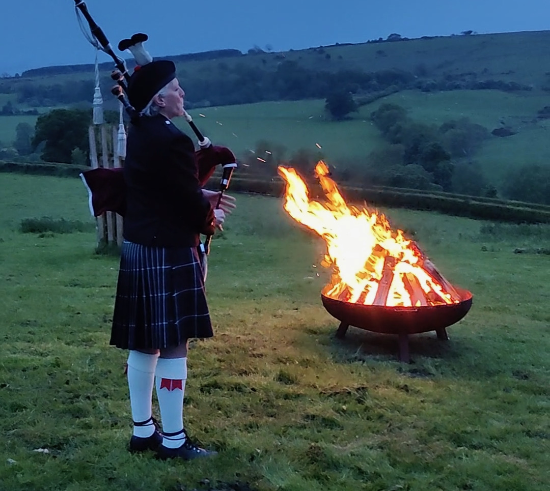 Our thanks go to The Rothbury Highland Pipe band for sending Donna Scott out on a very rainy Thursday evening to come and play the pipes for our beacon lighting in honour of the Queens Platinum Jubilee.