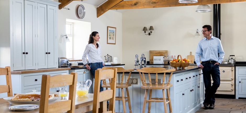 Breakfast is served in our kitchen, renovated from a dairy into a comfortable relaxing place to start your day.