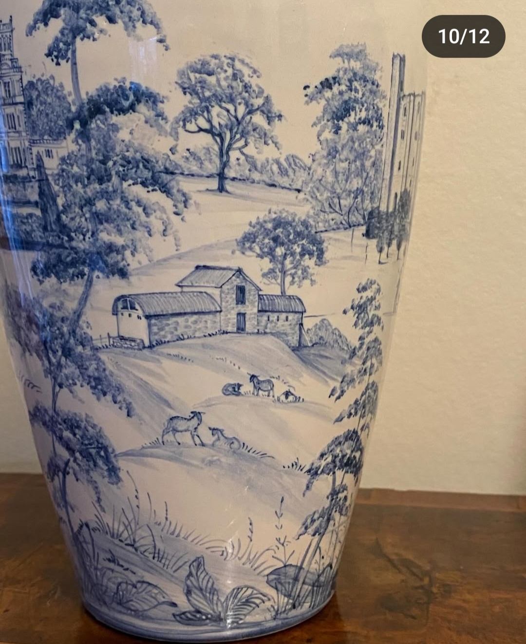 A pair of Delft vases depicting  eight nationally important Historic Houses that have been mentored by Norman Hudson and the team there to preserve the great buildings of our nation, have been made by Royal ceramicist Deborah Sears, known for her work at Highgrove House for King Charles II.