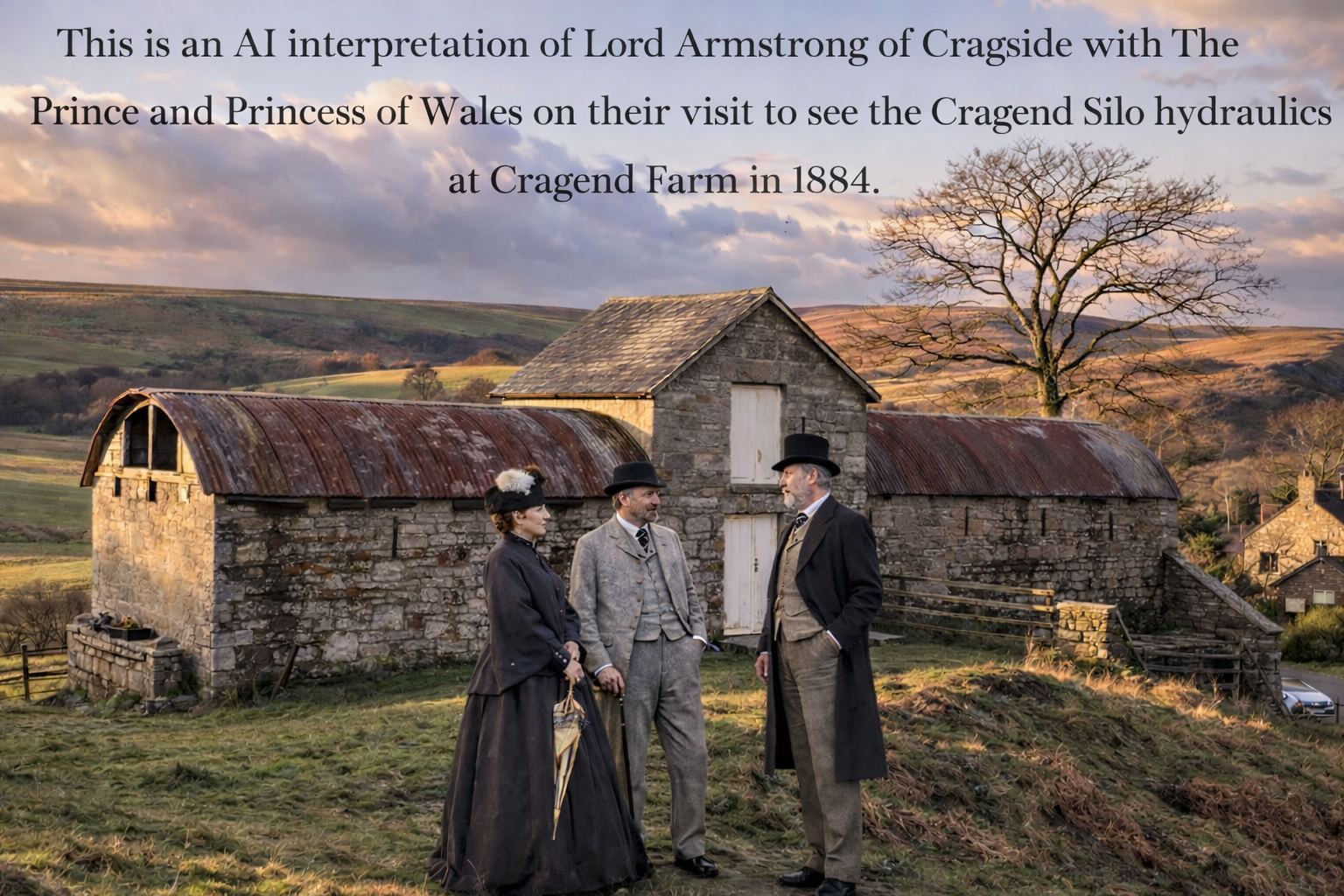In 1896 Li Hong Zhang (aka Li Hung Chang) visited Cragside the house in Northumberland were Armstrong had all his amazing technology such as light and heat, and it is arguable that Li Hong Zhang would have also visited Cragend Farm as many did. He was a Chinese statesman of the late Qing dynasty. He held important positions in the Qing government. Despite there being no photographic evidence of him at the farm, AI comes to the rescue to show what might have been.